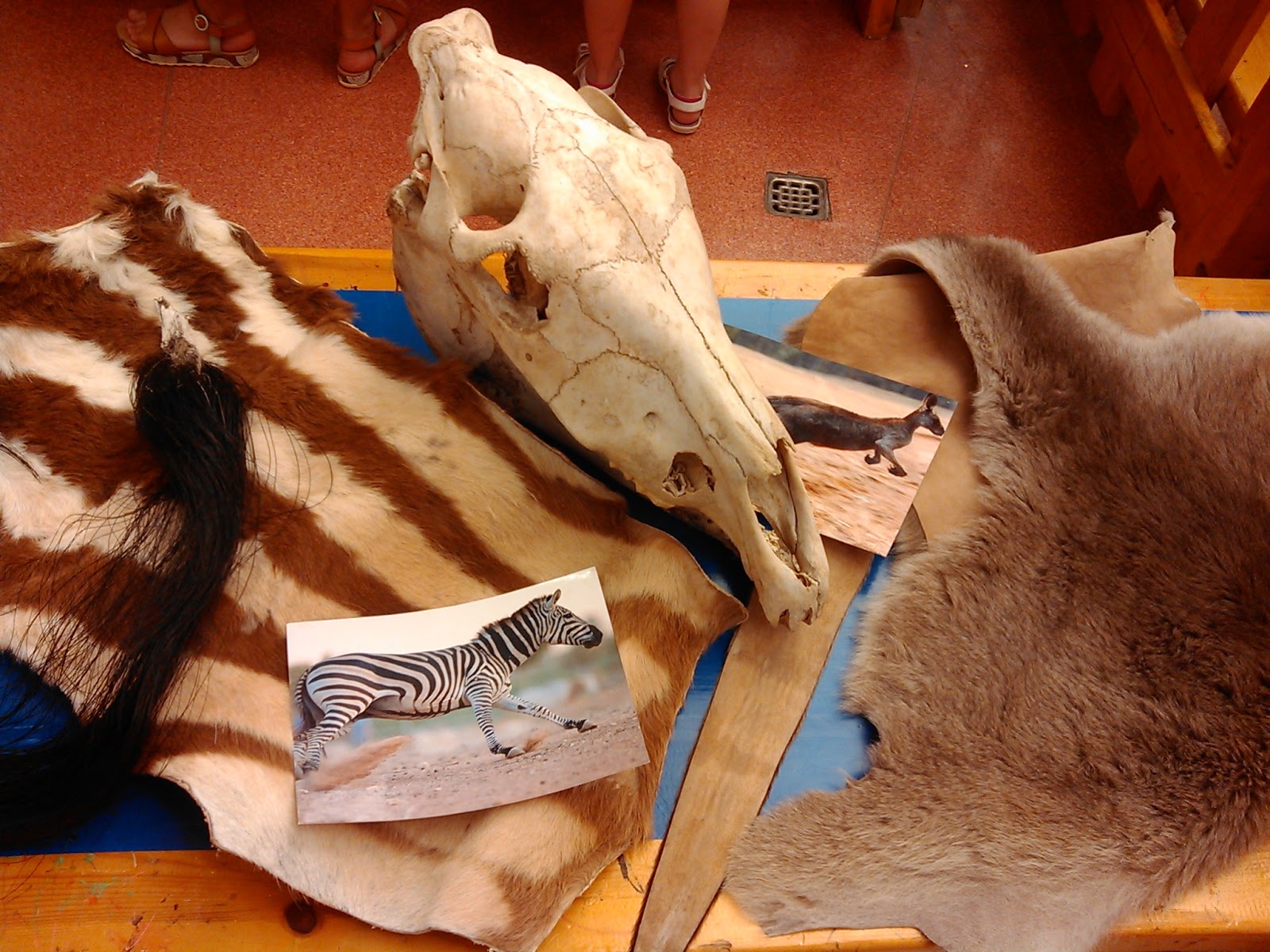 δέρμα και ψεύτικο κρανίο από τίγρη και πάνθηρα,