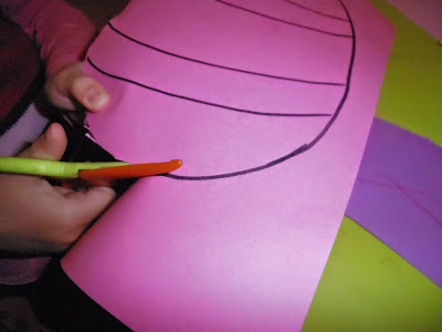 Η αρχική ιδέα ήταν να κολλήσουν χαρτάκια μέσα στο πλαίσιο που είχα ζωγραφίσει σε κάθε αβγό. Όμως αυτό ήταν δύσκολο για τη μικρή ζουζουνα κι έτσι είχαμε αλλαγή πλάνου: κολλάμε όπως μας αρέσει σε όλο το αβγό!