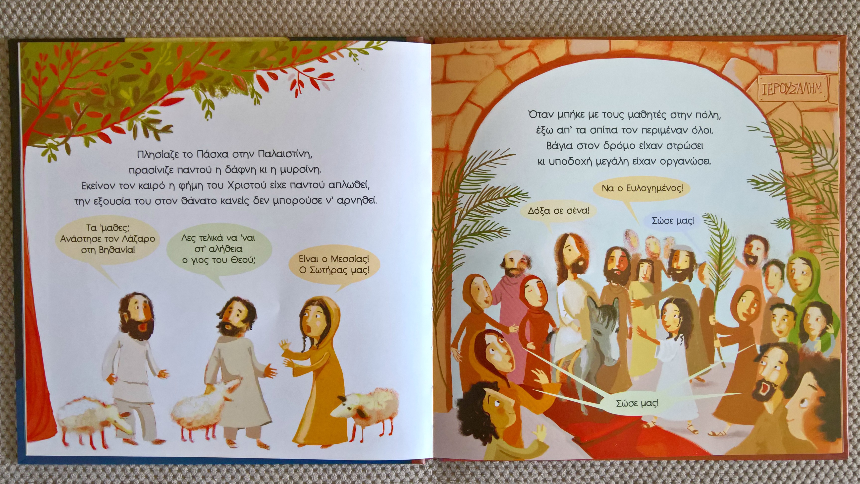 Καθώς πλησιάζει το Πάσχα στην Παλαιστίνη, οι άνθρωποι μιλούν για τον Χριστό, που η φήμη του είχε απλωθεί παντού, αφού τα θαύματα του είχαν αρχίσει να γίνονται γνωστά. “Ανέστησε τον Λάζαρο” είπαν κάποιοι κι άλλοι αναρωτήθηκαν αν στ΄ αλήθεια είναι ο γιος του Θεού, ο Σωτήρας.  Όταν ο Χριστός φτάνει στην Ιερουσαλήμ οι άνθρωποι υποδέχονται τον γιο του Θεού με μεγάλο ενθουσιασμό στρώνοντας βάγια στους δρόμους και παρακαλώντας τον να τους σώσει.