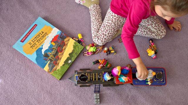 Μετά την πρόσφατη εκδρομή μας με το τρενάκι τον Οδοντωτό (που σας μίλησα εδώ), το ενδιαφέρον της Ελένης και της Έλλης για τα τρένα αυξήθηκε, έτσι το παιχνίδι-βιβλίο Η ιστορία του τρένου” των Εκδόσεων Ψυχογιός ήρθε και “κούμπωσε” υπέροχα!