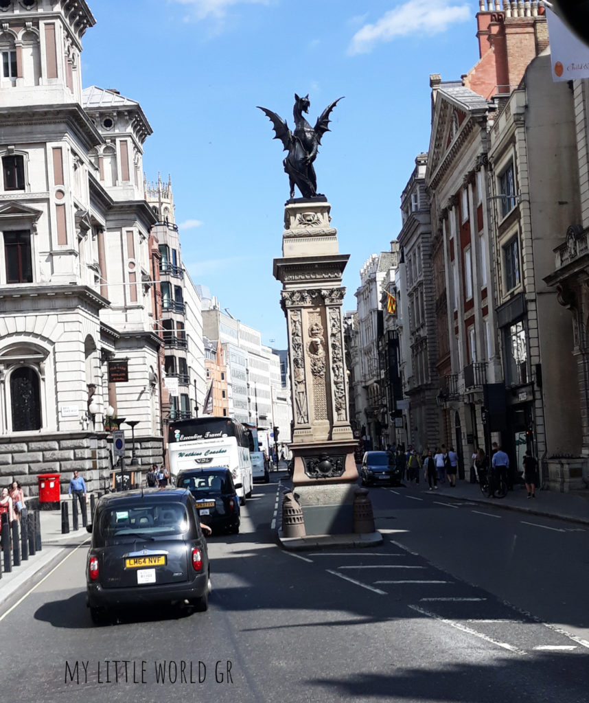 Έτσι με το πούλμαν του group, περάσαμε μία βόλτα σχεδόν από όλα τα σημαντικά μέρη του Λονδίνου για τα οποία μας μιλούσε η ξεναγός μας. Είδαμε όλες τις αριστοκρατικές και πανάκριβες περιοχές του Λονδίνου, διασχίσαμε τη London Bridge, μπήκαμε στο City of London και θαυμάσαμε τους χαρακτηριστικούς δράκους του Λονδίνου, διασχίσαμε την Oxford Street, κτλ.