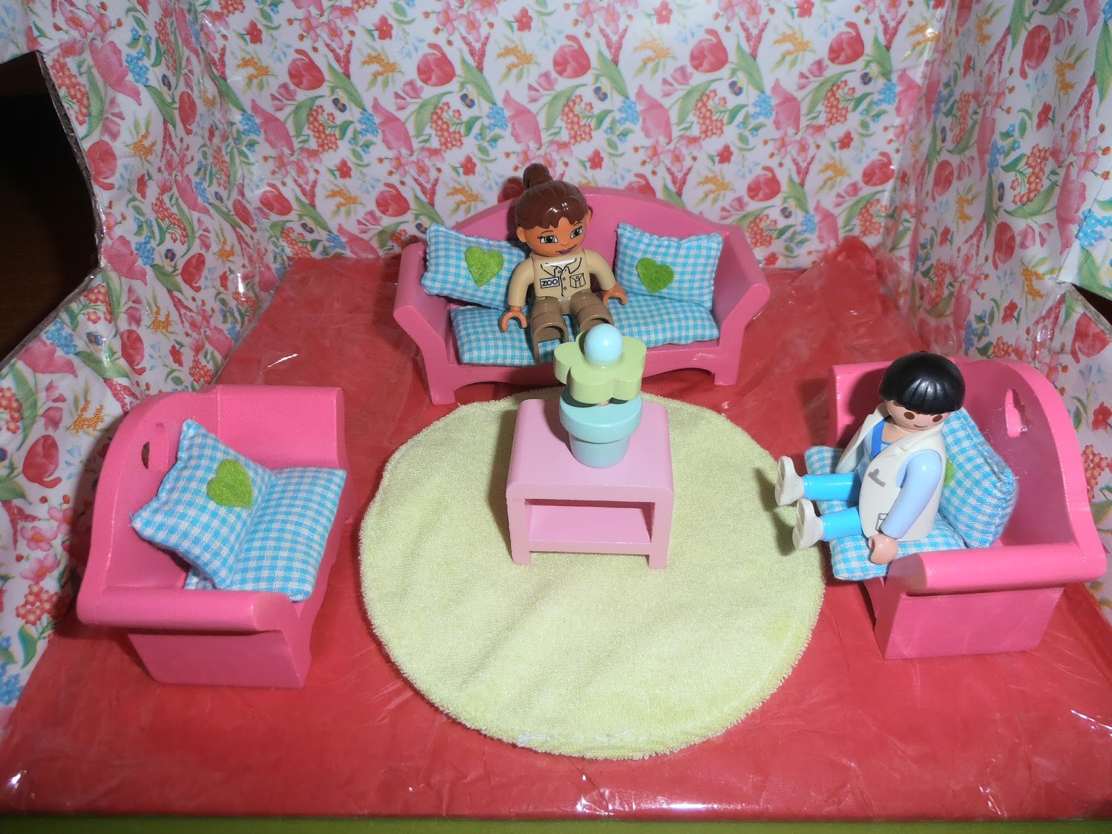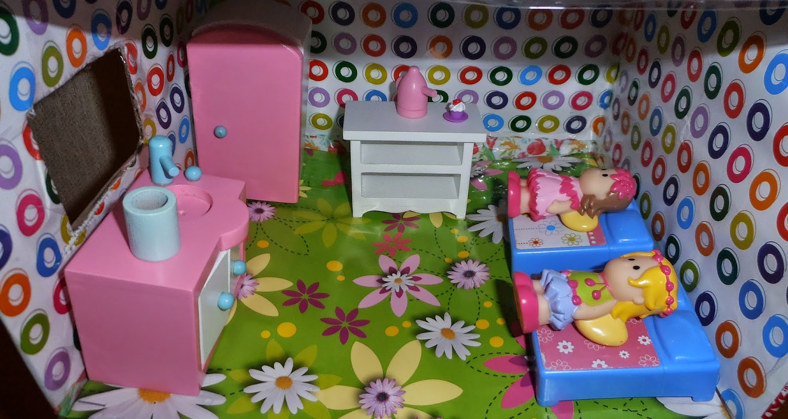 Μετά δανειστήκαμε από τα υπόλοιπα τέσσερα (ναι καλά διαβάσατε) κουκλόσπιτα μερικά έπιπλα και οι νέοι κάτοικοι του σπιτιού ήταν έτοιμοι να το εξερευνήσουν!