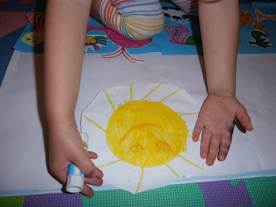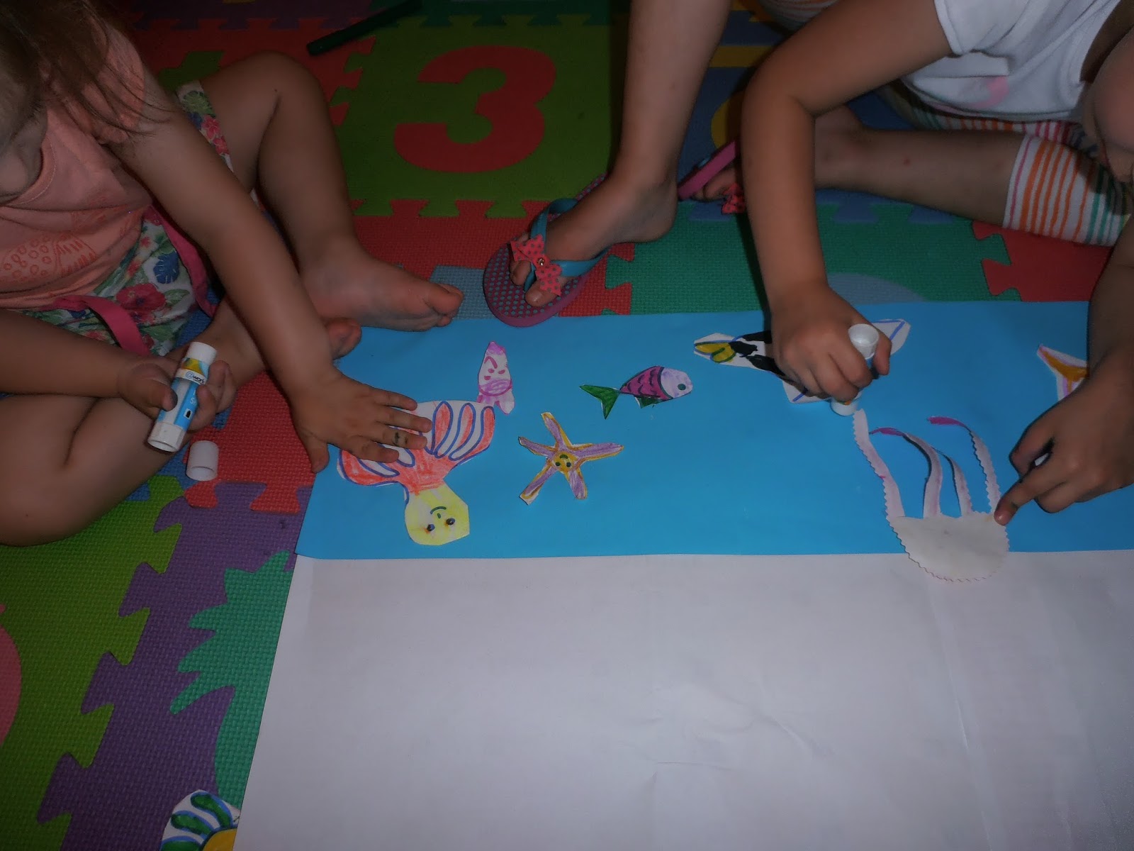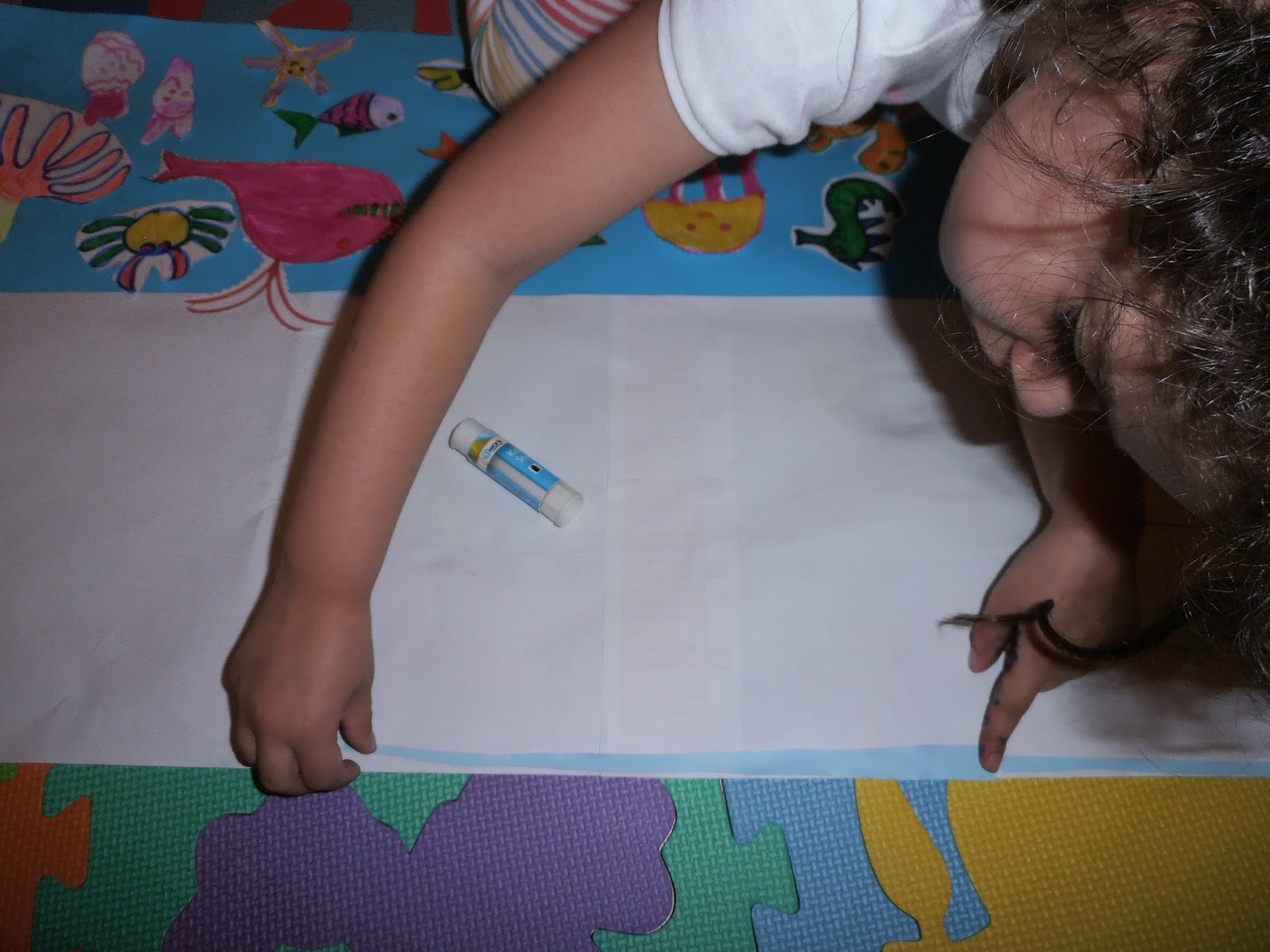 Η Ελένη σκέφτηκε να κολλήσουμε και μια γαλάζια λωρίδα για ουρανό!