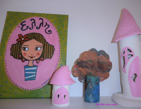 Ήταν πολύ χαρούμενη και έτσι το δεντράκι πήρε τη θέση του στο ραφάκι του δωματίου της!