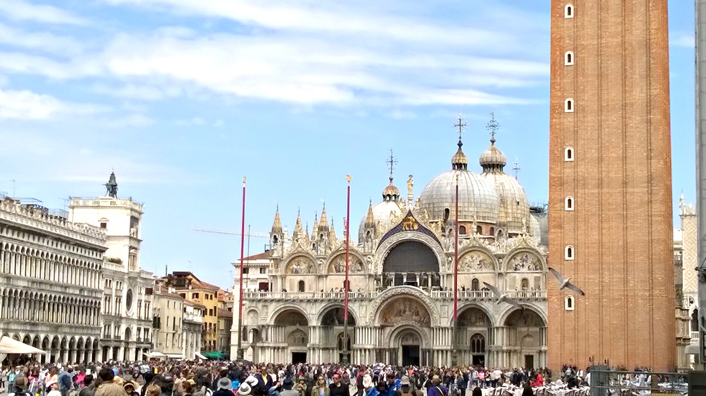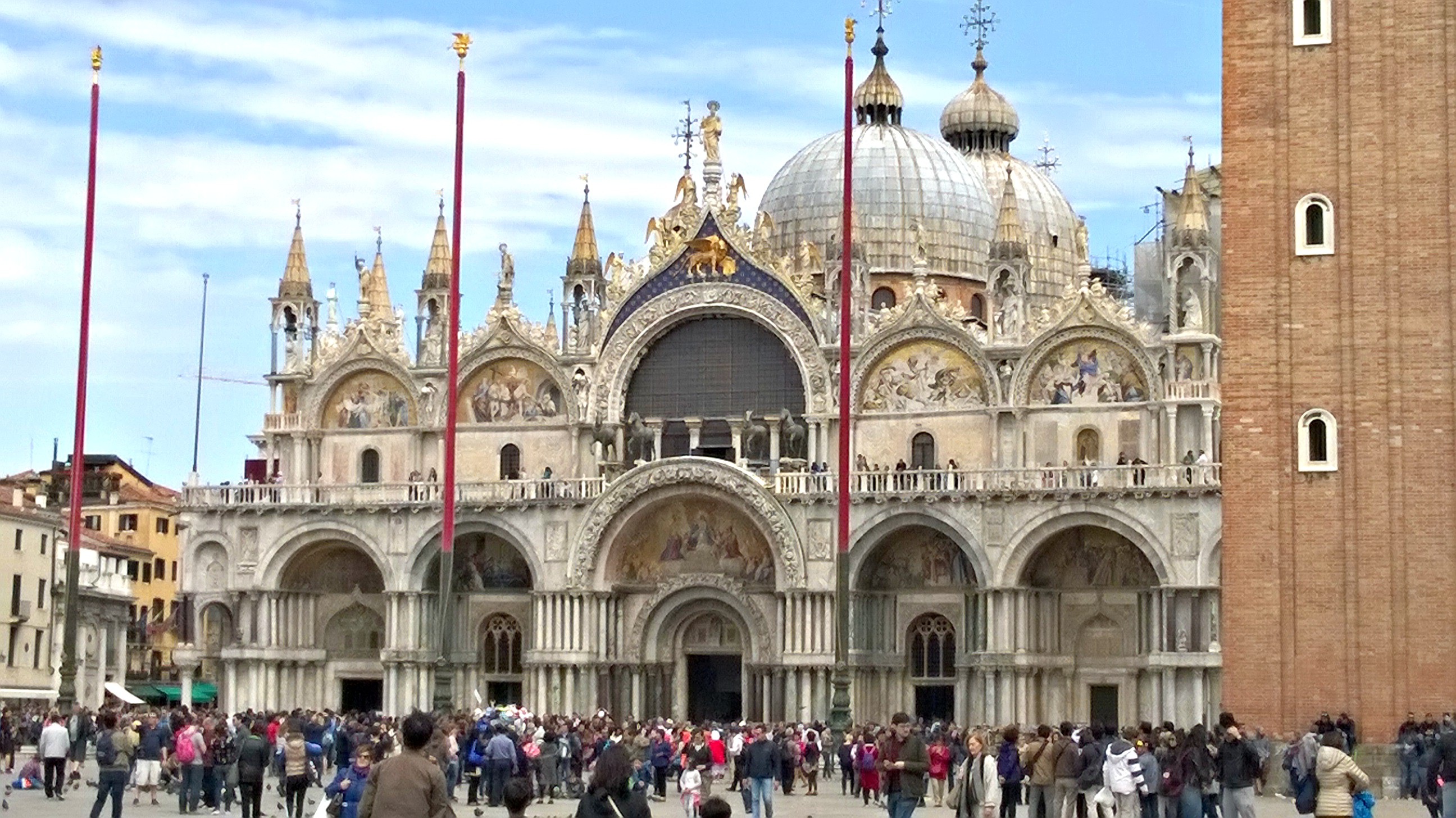 Τη Βασιλική του Αγίου Μάρκου στην ομώνυμη πλατεία που στο εσωτερικό της στεγάζει πολλούς από τους μεγαλύτερους θησαυρούς της Βενετίας, συμπεριλαμβανομένου του προσκυνήματος της εικόνας της Παναγίας της Nicopeia.