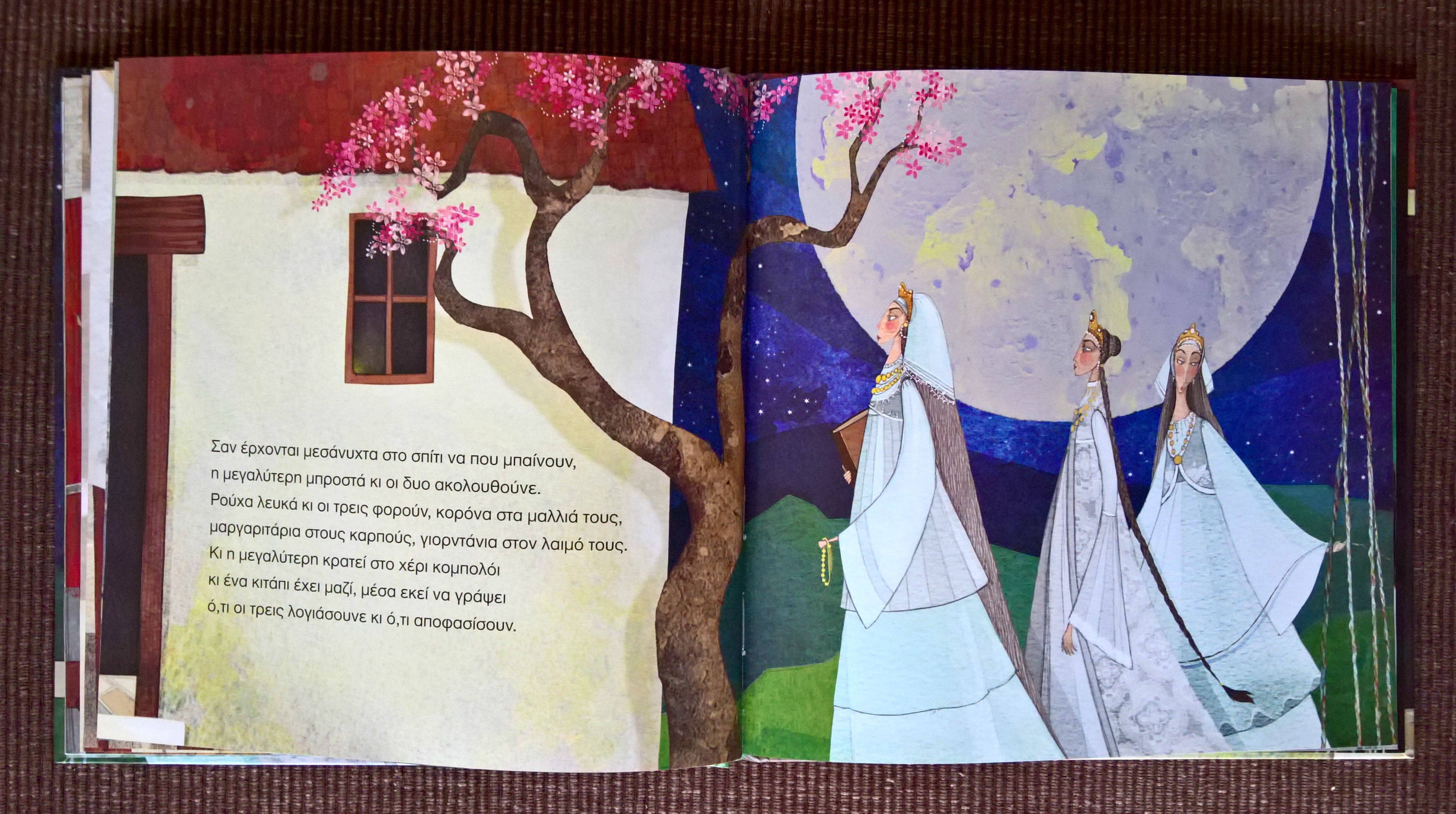 Το βιβλίο αυτό το διαβάσαμε αμέσως με το που το πιάσαμε στα χέρια μας και μας άρεσε πολύ γιατί την ιστορία του, με κάποιες παραλλαγές, τη λέει η γιαγιά στις κόρες μου και πάντα τους προκαλεί ένα δέος. Είναι μια ιστορία που προσπαθεί να εξηγήσει το ανεξήγητο, αυτό που ακόμα και σήμερα λέμε “ήταν της μοίρα του γραμμένο” για κάθε τι που συμβαίνει στους ανθρώπους γύρω μας κι αναρωτιόμαστε γιατί. Είναι ένα βιβλίο παρηγοριάς για όσα δεν μπορούμε να εξηγήσουμε με τη λογική κι έτσι τα αφήνουμε στο συναίσθημα. Ευτυχώς, το βιβλίο τελειώνει πολύ αισιόδοξα αφήνοντας να εννοηθεί ότι οι άνθρωποι έχουμε τη δύναμη να ξεπεράσουμε τους φόβους μας και τη μοίρα μας, με λίγη τύχη, μόνοι να την ορίσουμε! Τα κορίτσια μου κυριολεκτικά το “ρούφηξαν” γιατί είναι καλογραμμένο, με όμορφη και κατανοητή εικονογράφηση και νομίζω ότι έχει γίνει από τα αγαπημένα τους.