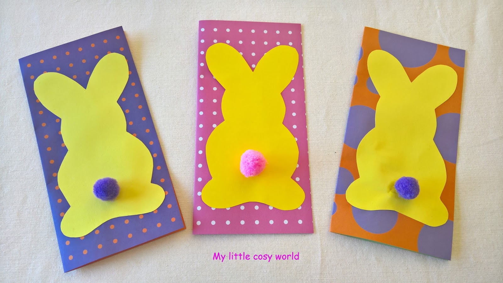 Τις συγκεκριμένες πασχαλινές κάρτες με κουνέλια τις έχω αγαπήσει! Γενικά, όταν κάνω ένα δώρο μου αρέσει πολύ να το συνοδεύω με χειροποίητη κάρτα ευχών. Ειδικά αν το δώρο μου είναι χειροποίητο νομίζω ότι επιβάλλεται να είναι και η συνοδευτική κάρτα χειροποίητη. Αυτό δε σημαίνει ότι δεν μου αρέσουν οι κάρτες του εμπορίου. Απλά εάν έχω το χρόνο προτιμώ να τις φτιάξω μόνη μου. Κι επειδή έρχεται Πάσχα αποφάσισα φέτος οι χειροποίητες κάρτες μου να έχουν πάνω τους κουνελάκια που τόσο μου αρέσουν!
