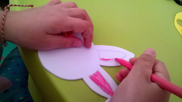Ζωγραφίσουμε τα αυτιά και τη μύτη-στόμα του κούνελου με μαρκαδόρο