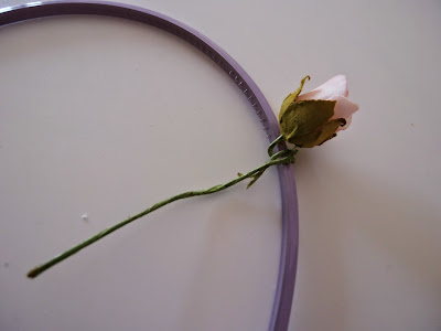 Πήρα μια στέκα (χωρίς στολίδια), διακοσμητικά λουλουδάκια με εύκαμπτο συρματάκι και λευκή κορδελίτσα.