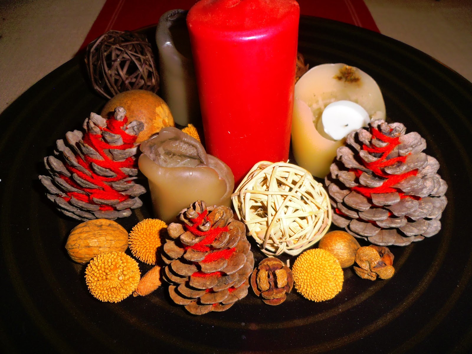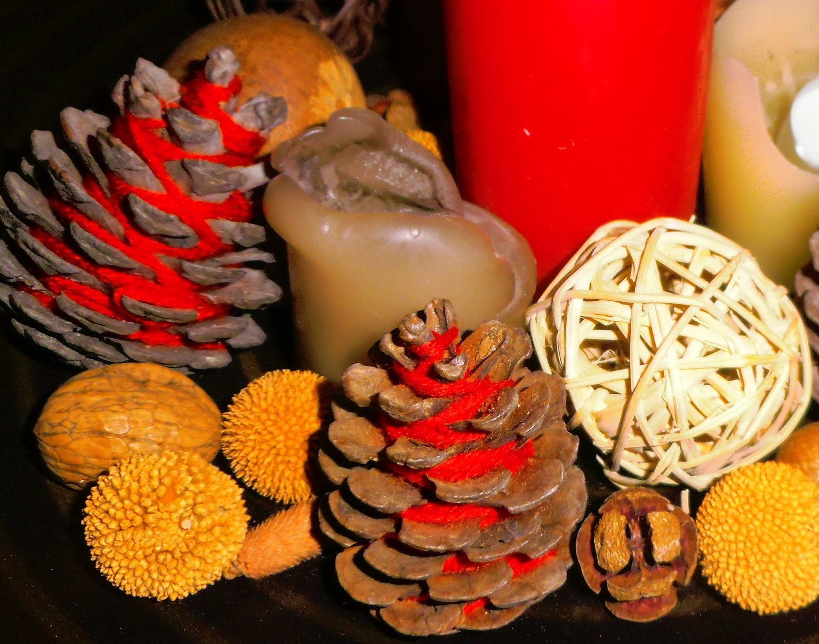 Κοίτα πως μπορείς να δώσεις χρώμα στα κουκουνάρια!!! Πάρα πολύ όμορφα τα έκανες! Το κόκκινο το λατρεύω!!
