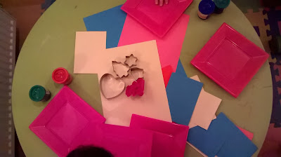 Πήραμε πολύχρωμα χαρτόνια, χριστουγεννιάτικα κουπ πατ μαγειρικής και χρώματα και ξεκινήσαμε!