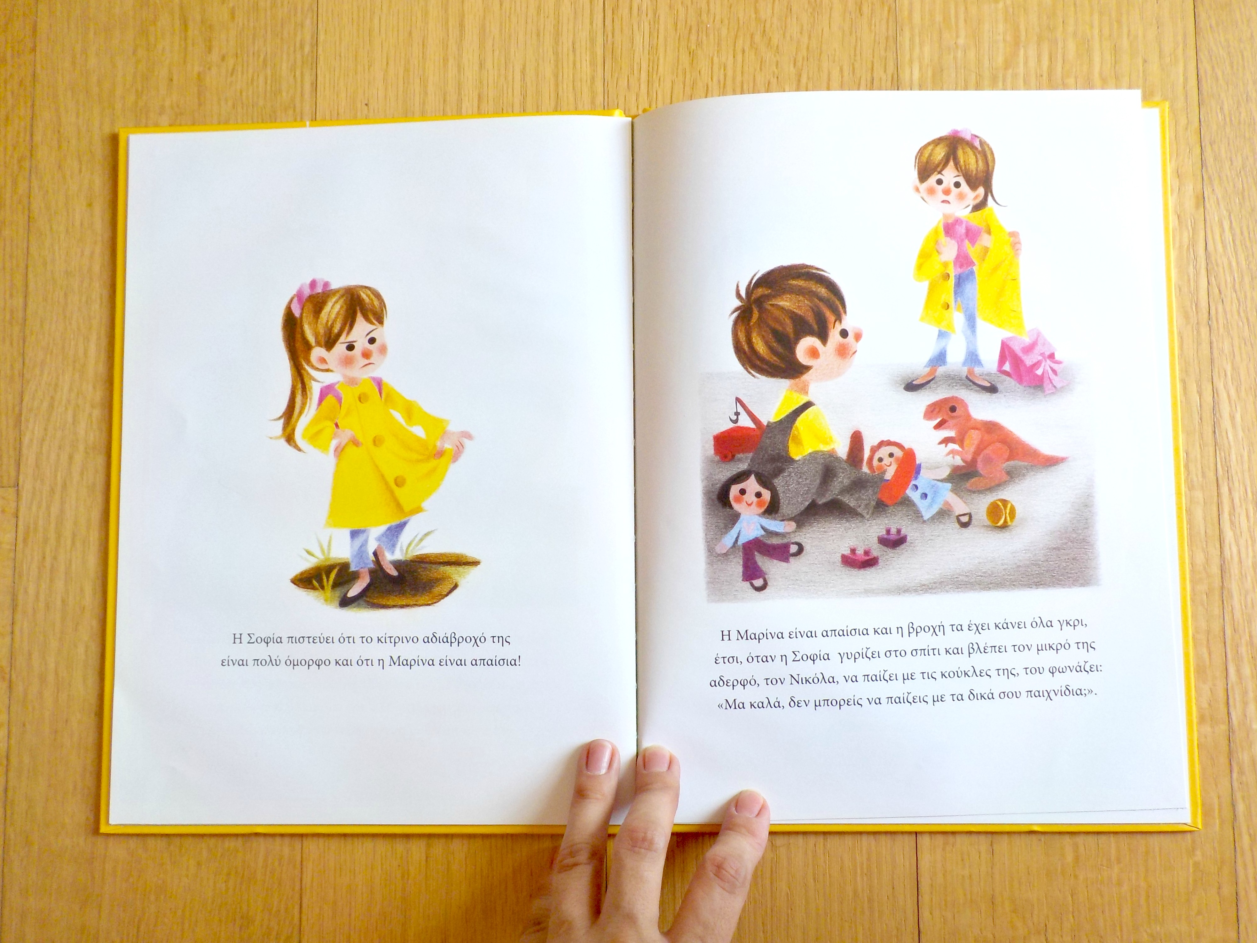 Όλα ξεκινούν από το ξεχασμένο φιλί του μπαμπά προς τη μαμά καθώς εκείνος φεύγει για τη δουλειά του. Η μαμά στενοχωριέται, θυμώνει και σε συνδυασμό με τη βροχερή ημέρα που επιβαρύνει την άσχημη διάθεσή της, ξεσπάει στον μικρό γιο της το Φίλιππο, ο οποίος με τη σειρά του ξεσπάει στην αδερφή του κι εκείνη στην καλύτερή της φίλη! Περιγράφει μία ανθρώπινη συμπεριφορά που εμένα μου έχει συμβεί πολλές φορές, δηλαδή να έχω θυμώσει κι άθελά μου να στεναχωρήσω κάποιον ή απλά να δημιουργήσω ένταση και άσχημο κλίμα. Αυτό έχει συμβεί και στα παιδιά μου που λόγω μικρής ηλικίας είναι ακόμα δυσκολότερο να διαχειριστούν τα συναισθήματά τους. Όμως με μικρή προσπάθεια και μια καλή κουβέντα το αρνητικό κλίμα μπορεί να αναστραφεί και η διάθεσή μας να είναι πάλι καλή.