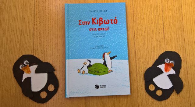 Το βιβλίο “Στην Κιβωτό στις οκτώ!” περιγράφει μια αρκετά κωμική ιστορία! Τρεις πιγκουίνοι που μυρίζουν ψαρίλα, παραπονιούνται για την ανιαρή ζωή τους και για το αδιάφορο περιβάλλον που ζουν. Παντού βλέπουν μόνο χιόνι, πάγο, χιόνι και πάγο! Αναρωτιούνται εάν ο Θεός έφτιαξε τον παγετώνα. Ε, δεν είναι και τίποτα σπουδαίο ο παγετώνας! Όλο χιόνι, πάγο, χιόνι και πάγο! Μήπως ο Θεός δεν είχε τα κέφια του; Ή μήπως απλώς του λείπει η φαντασία;