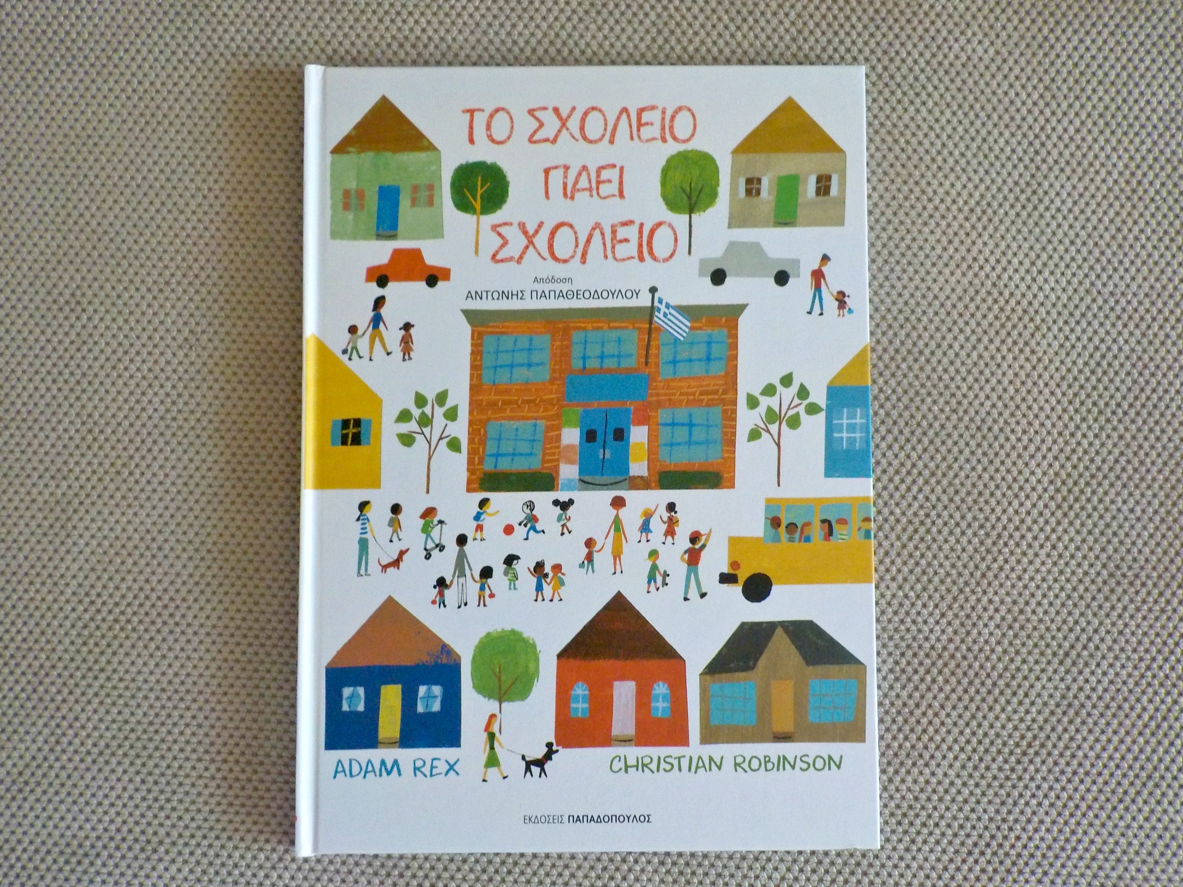 Τι μπορεί να πει κάποιος γι΄ αυτό το τόσο τρυφερό, συγκινητικό κι επίκαιρο βιβλίο “Το σχολείο πάει σχολείο” (“School’s First Day of School“, στον πρωτότυπο τίτλο του) του συγγραφέα Rex Adam, που έχει ήδη δεχτεί τόσες καλές κριτικές! Καταρχήν πρόκειται για ένα παιδικό βιβλίο που ήταν στη λίστα με τα καλύτερα βιβλία της χρονιάς της Washington Post και του Publishers Weekly και ταυτόχρονα υπογράφεται από δύο σημαντικά ονόματα: από τον πολυβραβευμένο εικονογράφο Robinson Christian (έπαινος Caldecot 2016, μετάλλιο Newbery 2016) και τον βραβευμένο και αγαπημένο συγγραφέα Αντώνη Παπαθεοδούλου ως προς τη μετάφραση/απόδοσή του στα ελληνικά.